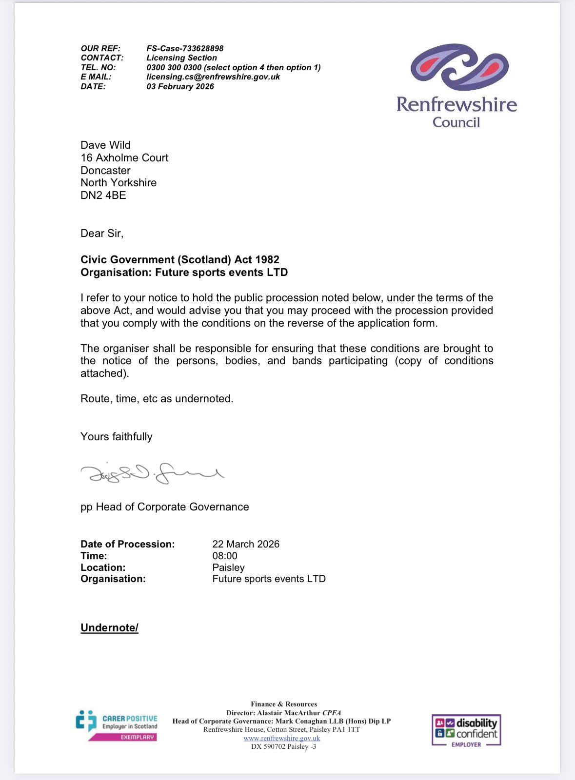 - Scenic Route: Run through the historic streets of Paisley and surrounding landmarks